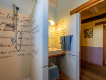Rustikaler Landsitz "Cascina Barroero", 650 m.ü.M.. 4 Wohnungen in der Residenz. 5 km vom Zentrum von Cortemilia, 30 km vom Zentrum von Alba, 35 km vom Zentrum von Acqui Terme, 55 km vom Meer, im Grünen, im Wald. Zur Mitbenutzung: Grundstück 10'000 m2 mit Rasen und Bäumen, Wiese, Liegewiese, Schwimmbad (19 x 4 m, 120 - 180 cm tief, saisonale Verfügbarkeit: 01.Apr. - 24.Nov.). Aussendusche, Pergola, Gartenmöbel. In der Anlage: Restaurant, Waschmaschine (extra), Wäschetrockner (zur Mitbenutzung, extra). 4 km lange sehr schmale Zufahrt. Parkplatz (für 4 Autos) beim Haus auf dem Grundstück. Einkaufsgeschäft 5 km, Supermarkt 5 km, Bahnstation "Alba" 30 km. Ab Hof Verkauf von bäuerlichen Produkten. Bitte beachten: Der Besitzer wohnt auf dem gleichen Grundstück. Tiere in der Umgebung.Interior