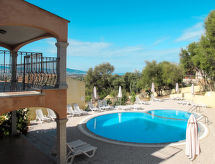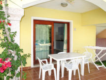 "Badus", 1-Zimmer-Wohnung 33 m2. Schön eingerichtet: Wohn-/Schlafzimmer mit 1 Doppeldiwanbett, Esstisch und TV. Ausgang zum Balkon, zur Terrasse. Offene Küche (4 Flammen, Tiefkühler). Dusche/WC. E-Heizung, Klimaanlage. Balkon 5 m2 oder Terrasse 5 m2, überdacht. Terrassenmöbel, Balkonmöbel. Zur Verfügung: Safe, Bügeleisen, Babybett, Haartrockner. Internet (Wireless LAN, gratis). Für die kulinarischen Bedürfnisse werden sie ein Gastronomiebetrieb vorfinden. Ihre Ferienunterkunft in Badesi mit Halbpension. Gerne servieren wir Ihnen das Frühstück. Es hat ein Kinderbecken. Dank der Waschmaschine die Sie vorfinden, sind weniger Kleider zum mitschleppen. Ein WLAN (Drahtloses lokales Netzwerk) ist verfügbar.- Ausstattung