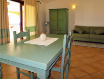 Schöne Ferienanlage "Badus", auf 2 Stockwerken. 2 Häuser in der Residenz. 51 Wohnungen in der Residenz. 200 m vom Zentrum von Badesi, am Ortsrand, 38 km vom Zentrum von Sassari, 80 km vom Zentrum von Olbia, 3.5 km vom Meer. Zur Mitbenutzung: gepflegter Garten mit Rasen und Pflanzen, 2 Schwimmbäder rund (11 m Durchmesser, 170 cm tief, saisonale Verfügbarkeit: 01.Jan. - 31.Dez.). Kinderbecken, Aussendusche, Boccia, Terrasse, Gartenmöbel, Grill, Kinderspielplatz. In der Anlage: Empfang, Restaurant, Bar, Aufenthaltsraum mit TV, Internetzugang, Wireless LAN, Einkaufsmöglichkeit, Boutique, Waschmaschine (zur Mitbenutzung, extra). Frühstück und Halbpension möglich auf Anfrage (extra). Abholservice vom Flughafen (extra). 40 m lange holprige Zufahrt. Parkplatz beim Haus. Supermarkt 250 m, Restaurant 150 m, Bushaltestelle "Badesi - Badesi Mare" 200 m, Fähre "Porto Torres" 55 km, Sandstrand "Li Junchi" 3.5 km. Das Foto ist nur ein Wohnungsbeispiel. Der Komplex wird durch eine Seitenstraße mit wenig Verkehr in zwei Teile geteilt.Interior