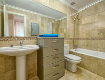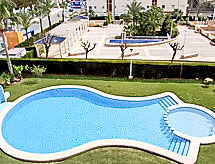"Bahia Blanca", 2-Zimmer-Attikawohnung 50 m2 im 3. Stock. Zweckmässig und gemütlich eingerichtet: Wohn-/Esszimmer mit 1 Diwanbett, Digital-TV, Internationale TV-Sender, Flachbildschirm, Klimaanlage und Warmluftheizung. Ausgang zur Terrasse. 1 Zimmer mit 1 franz. Bett, Bad/WC und E-Heizung. Küche (Backofen, 3 Glaskeramikherd Platten, Toaster, Wasserkocher, Mikrowelle, Tiefkühler, elektrische Kaffeemaschine). Terrasse teilweise überdacht. Terrassenmöbel. Sicht auf das Schwimmbad und den Garten. Zur Verfügung: Waschmaschine, Bügeleisen, Kinderhochstuhl, Babybett bis 2 Jahre, Haartrockner. Internet (Wireless LAN, gratis). Parkplatz Nr. 31. 1 Haustier/Hund erlaubt. AT-434565-A Eine Badewanne ist vorhanden. Objekt mit Lift. Die drückende Hitze kann Körper und Gemüt stark belasten. Deshalb sind die Räumlichkeiten mit Klimaanlagen ausgestattet. Ein Kinderbecken ist vorhanden.- Ausstattung