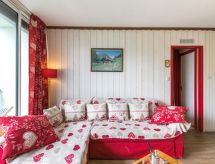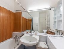 3-Zimmer-Wohnung 35 m2 im 9. Stock, Südlage. Schön und gemütlich eingerichtet: Wohn-/Esszimmer mit TV (Flachbildschirm), elektrischem Rollladen. Ausgang zum Balkon, Richtung Süden. 1 kleines Zimmer mit Schiebetür, ohne Fenster mit 1 franz. Bett (140 cm, Länge 190 cm). 1 kleines Zimmer mit 1 x 2 Etagenbetten (80 cm, Länge 190 cm), elektrischem Rollladen. Ausgang zum Balkon, Richtung Süden. Kochnische (Geschirrspüler, 2 Glaskeramikherd Platten, Toaster, Wasserkocher, Tiefkühler, elektrische Kaffeemaschine, Kapseln für die Kaffeemaschine (Nespresso) extra, Racletteofen, Kombinationsmikrowelle, Fondue Set (Käse)) mit Bar. Bad, sep. WC. E-Heizung. Parkettböden. Balkon 17 m2, Südlage. Balkonmöbel, Liegestühle (1). Sicht auf die Skipiste. Zur Verfügung: Waschmaschine, Bügeleisen. Internet (Wireless LAN, extra). Bitte beachten: Nichtraucher-Unterkunft. Rauchmelder. Eine Badewanne ist verfügbar. Bequem mit dem Lift bis vor die Haustür. Es gibt ein privater Pool. Es gibt ein beheizter Pool.- Ausstattung