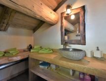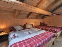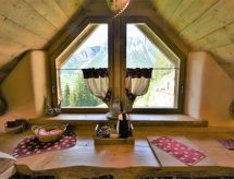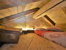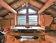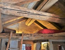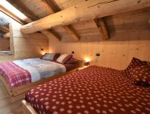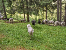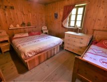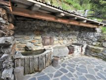 3-Zimmer-Chalet 105 m2 auf 2 Stockwerken. Objekt geeignet für 10 Erwachsene + 2 Kinder. Geräumig, teilweise abgeschrägt, gemütlich und mit viel Holz eingerichtet: grosses Wohn-/Schlafzimmer mit Panoramafenster mit 1 Doppeldiwanbett und 1 franz. Bett (140 cm, Länge 200 cm), 1 Doppelbett, Esstisch und TV (Flachbildschirm), Holzofen. Ausgang zum Garten. Abgeschrägte, offene Galerie, - 100 cm mit 1 Schlafmöglichkeit (120 cm). Grosse, offene Küche (Backofen, 4 Flammen) mit Holzofen. Dusche/Bidet/WC. Boiler. Unteres Geschoss: (Aussentreppe) grosses Wohn-/Esszimmer mit 1 franz. Bett (140 cm, Länge 200 cm), Esstisch und Holzofen. Ausgang zum Garten, zur Terrasse. 1 Zimmer mit 1 Bett und 1 Doppelbett. Grosse Kochnische (4 Flammen). Dusche/Bidet/WC. Heizung. Holzböden, Natursteinböden. 2 Terrassen. Terrassenmöbel, Gartengrill, Liegestühle (6), Abstellkammer. Schöne Panoramasicht auf die Berge, das Tal und den Wald. Zur Verfügung: Kinderhochstuhl, Babybett, Haartrockner. Bitte beachten: Nichtraucher-Haus. Maximal 3 Haustiere/Hunde erlaubt. Eigener Eingang. Keine interne Verbindung zwischen den Etagen. CIR: 014071-REC-00010 Es hat eine Sauna.- Ausstattung
