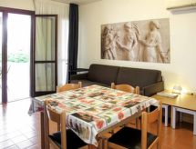 Das Villaggio Barbara liegt auf einem ca. 10.000 m2 großen, sonnigen Areal mit Olivenbäumen, Palmen und Grünflächen, etwa jeweils 1 km vom See mit Kieselstrand und Bademöglichkeit entfernt. Moniga del Garda 2 km. Insgesamt 43 Wohnungen liegen in 10 zweigeschossigen Reihenhäusern, die halbkreisförmig angelegt sind. Parkplatz auf dem abgeschlossenen Grundstück. Pool (geschwungene Form, gesamte Saison geöffnet) mit Kinderbecken und Poolbar. Sonnenliegen, € 10/Woche. Sonnenschirme. Tischtennis. Fahrradverleih (€ 13/Tag). Münzwaschmaschine zur gemeinsamen Nutzung. Grillplatz. Brötchenservice (vor Ort buchbar). 1x pro Woche Abendprogramm mit Live-Musik oder Zauberer (ca. 21.05.-08.09.). Wöchentliches Beachvolleyballturnier. Bootsausflug nach Lazise zum Wochenmarkt (gegen Bezahlung). Die Wohnungen haben alle einen separaten Eingang und eine überdachte Terrasse oder einen überdachten Balkon mit Gartenmöbeln, Sonnenschirm und 2 Liegestühlen. Internetzugang auf Terrasse/Balkon (WLAN, inklusive). In der herrlichen Natur zwischen saftigen Almwiesen, rauschenden Wälder, umgeben von der eindrucksvollen Bergwelt lädt der Ort zum Wandern ein. Das Golfspiel kann beginnen. Egal auf welchem der Plätze der Schlagabtausch stattfinden soll, hier Inmitten reizvoller Landschaft sind Sie am richtigen Ort.Interior