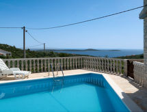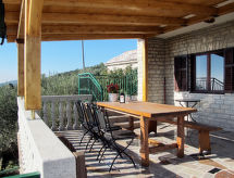 6-Zimmer-Haus 110 m2 auf 2 Stockwerken. Wohn-/Esszimmer mit Sat-TV (Flachbildschirm), Klimaanlage. 2 Zimmer, jedes Zimmer mit 1 Doppelbett. Offene Küche (4 Kochplatten, Backofen, Geschirrspüler, elektrische Kaffeemaschine). Dusche/WC. Obergeschoss: (Aussentreppe) Wohn-/Esszimmer mit Sat-TV (Flachbildschirm), Klimaanlage. Ausgang zum Balkon. 2 Zimmer, jedes Zimmer mit 1 Doppelbett. Offene Küche (4 Kochplatten, elektrische Kaffeemaschine). Dusche/WC. Warmluftheizung. Balkon, Terrasse teilweise überdacht. Terrassenmöbel, Balkonmöbel. Sicht auf das Meer. Zur Verfügung: Internet (Wireless LAN, gratis). Bitte beachten: Nichtraucher-Haus. Das Haus ist auch mit einem Parkplatz ausgestattet. Es hat ein Pool. Ein privater Pool ist vorhanden.- Ausstattung