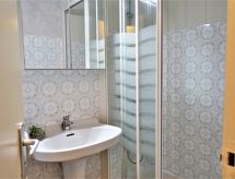 3-Zimmer-Wohnung 44 m2 im 1. Stock. Wohn-/Esszimmer mit 1 Doppeldiwanbett (140 cm), TV (Flachbildschirm). Ausgang zum Balkon. 1 Zimmer mit 1 franz. Bett (140 cm). 1 Zimmer mit 2 Betten (90 cm). Küche (2 Kochplatten, Backofen, Mikrowelle, Tiefkühler). Dusche, sep. WC. Keine Heizmöglichkeit. Kleiner Balkon. Zur Verfügung: Waschmaschine. Internet (Wireless LAN, extra). Parkplatz. Bitte beachten: Maximal 1 Haustier/Hund erlaubt. Rauchmelder. Residenz. Es hat ein Internetanschluss. Das Haus ist auch mit einem drahtlosen lokalen Netzwerk (WLAN) ausgestattet.- Charakteristik des Mietobjekts