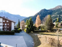 "Beau Site 7", 3-Zimmer-Wohnung 53 m2 im 2. Stock, Südwestlage. Komfortabel eingerichtet: Wohn-/Esszimmer mit Panoramafenster mit 1 Doppeldiwanbett (1 x 160 cm, Länge 190 cm), offenem Kamin und Kabel-TV (Flachbildschirm). Ausgang zum Balkon. 1 Zimmer mit 2 Betten (90 cm). 1 Kinderzimmer mit 1 Ausziehbett (2 Pers. 2 x 90 cm). Offene Küche (4 Kochplatten, Backofen, Mikrowelle, elektrische Kaffeemaschine, Racletteofen, Fondue Set (Chinoise, Käse)). Bad/WC. Balkon 14 m2, Südwestlage. Terrassenmöbel. Schöne Sicht auf die Berge und das Tal. Parkplatz (eingezäunt). Bitte beachten: Nichtraucher-Unterkunft. Maximal 1 Haustier/Hund erlaubt. Badewanne im Haus. Es herrscht ein Rauchverbot im Haus. Es wird darum gebeten sich daran zu halten. Vielen Dank. Auch ihr Hund ist hier ein gern gesehen Feriengast, schließlich gehört er zur Familie. Eine Feuerstelle ist verfügbar. Ein Wäschetrockner ist vorhanden.- Ausstattung