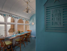 3-Zimmer-Landhaus auf 2 Stockwerken. Geräumig und hell, komfortabel und geschmackvoll eingerichtet: offenes Wohnzimmer mit TV, Flachbildschirm, DVD und E-Heizung. Offene Küche (4 Kochplatten, Backofen, Geschirrspüler, Mikrowelle, Tiefkühler) mit Esstisch. Heizung. Obergeschoss: 1 Doppelzimmer mit 1 Doppelbett und Waschbecken. 1 Zimmer mit 2 Betten. Bad/Dusche/WC. Heizung. Schöne Sicht auf das Meer. Zur Verfügung: Waschmaschine, Wäschetrockner. Internet (Wireless LAN, gratis). Bitte beachten: Nichtraucher-Haus. Bietet wunderschöne Aussicht aufs Meer. Es gibt ein DVD Spieler.- Charakteristik des Mietobjekts