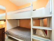 2-Zimmer-Wohnung 30 m2 im 2. Stock. Einfach eingerichtet: Wohn-/Esszimmer mit 1 Doppeldiwanbett (140 cm, Länge 200 cm), TV. Ausgang zur Terrasse. Kabine 4 m2 mit Schiebetür mit 1 x 2 Etagenbetten (80 cm, Länge 190 cm). Kochnische (4 Kochplatten, Geschirrspüler, Kombinationsmikrowelle) mit Durchreiche. Dusche, sep. WC. E-Heizung. Terrasse 10 m2 teilweise überdacht, Ostlage. Terrassenmöbel. Zur Verfügung: Internet (Wireless LAN, extra). Parkplatz. Bitte beachten: Rauchmelder. 06029004158HT Residenz. Es gibt ein Parkplatz. Es gibt WLAN (Drahtloses lokales Netzwerk).- Charakteristik des Mietobjekts