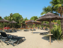 "Happy Premium", 4-Zimmer-Mobilheim 30 m2. Komfortabel eingerichtet: Wohn-/Schlafzimmer mit Esstisch, E-Heizung und Klimaanlage. 1 Zimmer mit 1 franz. Bett (140 cm, Länge 190 cm). 2 Zimmer, jedes Zimmer mit 2 Betten (70 cm, Länge 190 cm). Offene Küche (4 Kochplatten, Mikrowelle, Tiefkühler, elektrische Kaffeemaschine). Dusche/WC. Klimaanlage (extra). Terrasse teilweise überdacht. Terrassenmöbel, Elektrogrill (mobil), Liegestühle (2). Zur Verfügung: Fliegengitter. Parkplatz (1 Auto) beim Haus. Bitte beachten: Nichtraucher-Unterkunft. Lust im Urlaub nicht immer selber zu kochen? Gönnen Sie sich einen Besuch im angeschlossenen Restaurant. Das Grundstück ist komplett eingezäunt. Auf dem Spielplatz können sich die Kinder austoben. Geeignet zum Grillen. Es gibt ein Parkplatz. Ein Kinderbecken ist verfügbar. Eine Waschmaschine ist zum gebrauch vorhanden. Ein WLAN (Drahtloses lokales Netzwerk) ist verfügbar. Es gibt ein Wäschetrockner. Frische Bettwäsche verfügbar. Ein Tischtennistisch ist verfügbar.- Ausstattung