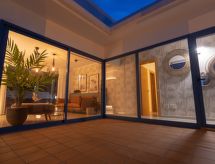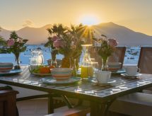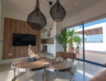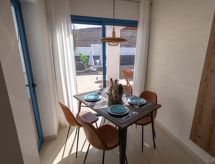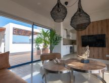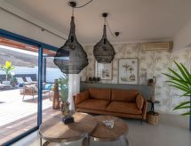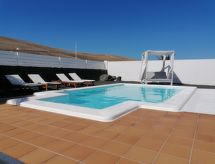 Schönes, komfortables, gemütliches Reihenhaus "Bellavista". Hausausstattung: Klimaanlage, Waschmaschine (zur Alleinbenutzung). Zufahrt & Parkmöglichkeiten: Parkplatz beim Haus. Ganzjährig Zufahrt bis zum Haus möglich. Auto empfohlen, Treppenweg mit 14 Stufen. Lage: ausserhalb von Playa Blanca 3 km, ruhige, erhöhte, sonnige Lage. Aussicht von der Wohnung auf das Meer und die Berge. Umgebung des Hauses: Grundstück (zur Alleinbenutzung, 500 m2), Swimming Pool (zur Alleinbenutzung, Länge 6 m x Breite 4 m, offen von 01.01. bis 31 .12.), Grill (zur Alleinbenutzung). Infrastruktur und Distanzen: Einkaufsgeschäft 2 km, Lebensmittelgeschäft 500 m, Restaurant 1.5 km, Badebucht 1.8 km, Sandstrand 1.8 km, Golfplatz 30 km, Tennis 800 m, Reiten 1.5 km, Bushaltestelle 500 m.Interior