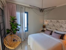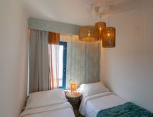 3-Zimmer- "V. 26", Haus für 4 Personen, 65 m2, komfortabel und modern eingerichtet. Wohn-/Esszimmer mit Sat-TV und Kabel-TV. Rauchen nicht erlaubt. Internet (Wireless LAN [WLAN]). Schlafzimmer mit 1 franz. Bett. Schlafzimmer mit 2 Normalbetten. Küche mit 4 - Platten Herd, Mikrowelle, Backofen, Esstisch, Kühlschrank und Tiefkühler. Bad/WC und Bidet. Balkon, Gartensitzplatz 340 m2, Terrassenmöbel, 4 Liegestühle. Weitere Ausstattung: Safe, Kinderhochstuhl, Haartrockner, Bügeleisen, Waschmaschine. Die Klimaanlagen befinden sich nur im Hauptschlafzimmer sowie in Wohnzimmer. VV-35-3-0000314 Das Haus ist auch mit einem Balkon ausgestattet. Ein Babybett ist vorhanden.- Charakteristik des Mietobjekts
