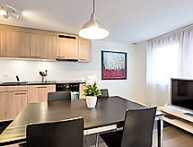 "Apt. 2", 3-Zimmer-Wohnung 100 m2 im 2. Stock. Geräumig und hell, modern und geschmackvoll eingerichtet: Wohnzimmer mit Kabel-TV und Stereoanlage. 2 Zimmer, jedes Zimmer mit 2 Betten (90 cm, Länge 200 cm), Radio. Offene Küche (Backofen, Geschirrspüler, 4 Glaskeramikherd Platten, Toaster, Wasserkocher, elektrische Kaffeemaschine, Kapseln für die Kaffeemaschine (Nespresso) extra, Fondue Set (Käse)). Dusche/WC, Bad/Dusche/WC. Grosse Terrasse. Terrassenmöbel. Sehr schöne Panoramasicht auf die Berge. Zur Verfügung: Haartrockner. Internet (Wireless LAN, gratis). Bitte beachten: Nichtraucher-Unterkunft. Bitte geniessen Sie ihren Tabak nicht im Ferienobjekt. Es verstösst gegen die Hausordnung. Das Ferienobjekt verfügt über einen Personenaufzug. Das Haus ist auch mit einem Babybett ausgestattet. Ein Geschirrspüler ist vorhanden. Ein Wäschetrockner ist vorhanden.- Ausstattung