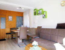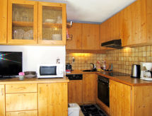 "Bergwelt (OEZ530)", 3-Zimmer-Wohnung 65 m2 im 1. Stock, Südlage. Gemütlich und mit viel Holz eingerichtet: 1 Zimmer mit 1 Diwanbett, 1 Doppelbett und Dusche/WC. 1 Zimmer mit 1 Diwanbett, 1 Doppelbett und Dusche/WC. Wohnküche (Backofen, Geschirrspüler, 4 Glaskeramikherd Platten, Toaster, Wasserkocher, elektrische Kaffeemaschine) mit Essecke, Sat-TV und Radio. Ausgang zum Balkon. Ölheizung. Teppichboden. Balkon, Südlage. Balkonmöbel. Schöne Panoramasicht auf die Berge und die Ortschaft. Zur Verfügung: Babybett. Internet (Wireless LAN, gratis). Bitte beachten: ein Doppelzimmer liegt außerhalb der Wohnung. Maximal 1 Haustier/Hund erlaubt. Rauchmelder. Bei Belegung mit weniger Personen als der maximalen Personenzahl stehen nicht alle Wohneinheiten zur Verfügung. Das ist eine Ferienunterkunft in der auch Ihr Hund herzlich willkommen ist. Es hat ein Geschirrspüler.- Ausstattung