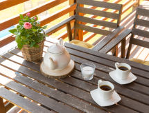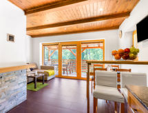 3-Zimmer-Haus 90 m2 auf 2 Stockwerken. Vollständig renoviert im Jahre 2012, geschmackvoll und gemütlich eingerichtet: Wohnzimmer mit 1 Diwanbett, Schwedenofen, Sat-TV, Radio und CD. Ausgang zur Terrasse. Offene Küche (Backofen, Geschirrspüler, 4 Glaskeramikherd Platten, Toaster, Wasserkocher, Mikrowelle, Tiefkühler, elektrische Kaffeemaschine) mit Esstisch. Dusche/WC. E-Heizung. Obergeschoss: 1 abgeschrägtes Zimmer mit 1 Bett, 1 Doppelbett und TV. 1 abgeschrägtes Zimmer mit 1 Doppelbett und TV. Holzböden. Terrasse 12 m2. Terrassenmöbel, Loggia. Sicht auf die Landschaft. Zur Verfügung: Waschmaschine, Kinderhochstuhl, Babybett. Internet (Wireless LAN, gratis). Maximal 3 Haustiere/Hunde erlaubt. Zweibeiner und Vierbeiner gemeinsam im Urlaub ist hier möglich, denn hier sind alle willkommen. Haustiere sind erlaubt. Ein Ort für Erholungsurlaube zum Sonnenbaden und Lesen im Garten. Eine Terrasse ist verfügbar. Es gibt ein Pool. Es gibt ein privater Pool. Ein Ofen ist vorhanden.- Ausstattung