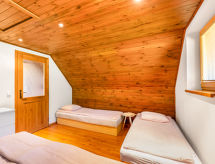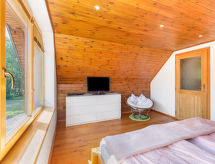 Sehr schönes, alleinstehendes Chalet "Bila (BLJ100)", auf 2 Stockwerken, umgeben von Bäumen und Wiesen. 3 km vom Zentrum von Blažejov, 3 km vom Zentrum von Hospříz, 35 km vom Zentrum von Třeboň, ruhige, sonnige Lage, 100 m vom See. Zur Alleinbenutzung: Grundstück 600 m2, Terrassengarten (nicht eingezäunt), Wiese, Aufstellpool (3,5 m Durchmesser, 80 cm tief, saisonale Verfügbarkeit: 16.Mai. - 26.Sep.). Terrasse, Gartenmöbel, Grill. Im Hause: Wireless LAN. 700 m lange holprige Zufahrt (Naturweg). Parkplatz (für 2 Autos) auf dem Grundstück. Einkaufsgeschäft 3 km, Supermarkt 8 km, Bushaltestelle "Hospříz" 3 km, Bahnstation "Blažejov" 2.5 km, Grasstrand 400 m, Badesee "Ratmírovský rybník" 400 m. Golfplatz (9 Loch) 19 km, Wanderwege ab Haus, Radweg 10 m. Bitte beachten: Babyausstattung (inkl.).Interior