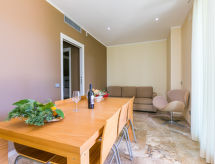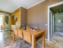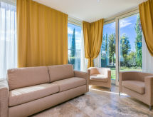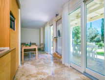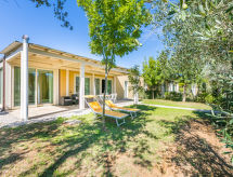 4-Zimmer-Haus 84 m2, im Erdgeschoss. Modern und stilvoll eingerichtet: Wohn-/Esszimmer mit Esstisch und Sat-TV. 1 Doppelzimmer mit Bad und Sprudelbad. 1 Zimmer mit 2 Betten. Wohnzimmer mit 1 Doppeldiwanbett. Kochnische (Geschirrspüler, 4 Glaskeramikherd Platten, Toaster, Wasserkocher, elektrische Kaffeemaschine, Kombinationsmikrowelle). Dusche/Bidet/WC. E-Heizung (extra), Klimaanlage (extra). Gartensitzplatz, Garten 20 m2. Terrassenmöbel. Bitte beachten: Nichtraucher-Unterkunft. 1 Haustier/Hund erlaubt. Mit eigenem Whirlpool.,Nutzen Sie den Whirlpool. Es hat eine Veranda. Es gibt ein Wäschetrockner.- Charakteristik des Mietobjekts