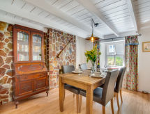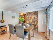 4-Zimmer-Landhaus auf 2 Stockwerken. Komfortabel und gemütlich eingerichtet: Wohnzimmer mit offenem Kamin und TV (Flachbildschirm), DVD. Esszimmer. Küche (4 Kochplatten, Backofen, Geschirrspüler, Mikrowelle, Tiefkühler). Ausgang zum Gartensitzplatz. Dusche/WC. Obergeschoss: 1 Zimmer mit 1 Doppelbett. 1 Zimmer mit 2 Betten. E-Heizung, Holzheizung. Gartensitzplatz, Garten. Terrassenmöbel. Zur Verfügung: Waschmaschine. IPod docking station. Parkplatz Nr. 2. Bitte beachten: Nichtraucher-Haus. Es gibt eine Veranda. Das Haus ist auch mit einem Geschirrspüler ausgestattet. Das Haus ist auch mit einer Feuerstelle ausgestattet. Ein DVD Spieler ist verfügbar.- Ausstattung