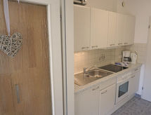 1-Zimmer-Wohnung 35 m2. Gemütlich eingerichtet: Wohn-/Esszimmer mit 1 Doppeldiwanbett, Sat-TV und Radio. Kochnische im Eingang). Bad/WC. Balkon. Zur Verfügung: Telefon. Internet (Wireless LAN, gratis). Bitte beachten: 1 Haustier/Hund erlaubt. Rauchmelder. Beim Mietobjekt handelt es sich um ein Typenhaus bzw. Um eine Typenwohnung. Individuelle Einrichtung jeder Wohnung. Schlafgelegenheit im Wohnzimmer: Doppelwandschrankbett oder Doppeldiwanbett. Eine Badewanne ist vorhanden. An der Rezeption erhalten Sie den Schlüssel Ihrer Ferienunterkunft sowie weitere hilfreiche Informationen. Sie gelangen mit dem Aufzug zur Etage der Wohnung. Im dazugehörigen Garten kann man den Urlaub in vollen Zügen genießen. Das Objekt ist ausgestattet mit Solarium. Ein eindrucksvoller Kinderspielplatz befindet sich ebenfalls auf dem Anwesen. Es hat eine Terrasse. Das Haus ist auch mit einem überdachten Parkplatz ausgestattet. Das Haus ist auch mit einer Sauna ausgestattet. Das Haus ist auch mit einem Innenpool ausgestattet. Ein WLAN (Drahtloses lokales Netzwerk) ist verfügbar. Ein Billardtisch ist vorhanden.- Ausstattung