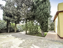 3-Zimmer-Haus 75 m2. Einfach und zweckmässig eingerichtet: Eingang. Wohn-/Esszimmer mit Sat-TV. 1 Doppelzimmer mit Ventilator. 1 Zimmer mit 2 Betten und Ventilator. Kleine Küche (4 Kochplatten, Backofen, Toaster, Wasserkocher, Mikrowelle, Tiefkühler). Dusche/Bidet/WC. Keine Heizmöglichkeit. Kleine Terrasse 10 m2, grosse Terrasse 120 m2, überdacht. Terrassenmöbel, Gartengrill. Sicht auf die Landschaft. Zur Verfügung: Waschmaschine, Bügeleisen, Fliegengitter, Haartrockner. Parkplatz (1 Auto). Geeignet für Familien. Maximal 1 Haustier/Hund erlaubt. Zugang zum Zweibettzimmer über das Wohnzimmer. Die Terrasse ist über die Aussentreppe erreichbar. Haustiere sind erlaubt. Lassen Sie Ihren Hund mitschnuppern an den schönsten Tagen im Jahr. Es gibt ein überdachter Parkplatz. Ein Ofen ist vorhanden.- Ausstattung