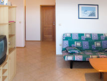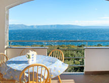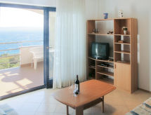 "Blazina", 2-Zimmer-Wohnung 38 m2 im 1. Stock. Wohn-/Esszimmer mit 2 Diwanbetten (130 cm, Länge 190 cm), Sat-TV und Klimaanlage. Ausgang zur Terrasse. 1 Zimmer mit 1 Doppelbett. Offene Küche (2 Kochplatten, Backofen, 2 Flammen, Toaster, Wasserkocher, Mikrowelle, elektrische Kaffeemaschine). Bad/WC. Terrasse überdacht. Terrassenmöbel. Sicht auf das Meer. Zur Verfügung: Internet (Wireless LAN, gratis). Bitte beachten: Nichtraucher-Haus. Eigener Eingang. Es herrscht ein Rauchverbot im Haus. Es wird darum gebeten sich daran zu halten. Vielen Dank. Überdies werden sie verwöhnt mit einem freien Blick auf das Meer.- Ausstattung
