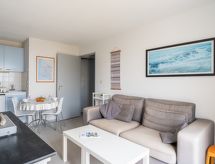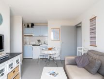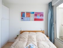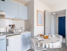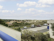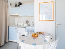 "Bleu Marine 266", 3-Zimmer-Wohnung 45 m2 im 2. Stock. Zweckmässig eingerichtet: Wohn-/Esszimmer mit 1 Doppeldiwanbett (140 cm, Länge 190 cm), TV, Flachbildschirm und DVD. Ausgang zur Terrasse. 1 Zimmer mit 1 Doppelbett (140 cm, Länge 190 cm). Ausgang zur Terrasse. 1 kleines Zimmer mit 2 Betten (80 cm, Länge 190 cm). Offene Küche (2 Kochplatten, Mini-Backofen, Toaster, Wasserkocher, Mikrowelle, elektrische Kaffeemaschine, Kapseln für die Kaffeemaschine (Senseo) extra). Bad, sep. WC. Heizung. Terrasse 15 m2, Westlage. Terrassenmöbel. Schöne Sicht auf das Meer. Zur Verfügung: Waschmaschine. Internet (Wireless LAN, extra). Parkplatz (überdacht). 1 Haustier/Hund erlaubt. Badewanne im Haus. Es gibt eine Terrasse. Ein überdachter Parkplatz ist vorhanden. Ein Pool ist vorhanden. Ein Kinderbecken ist verfügbar. Es hat ein DVD Spieler.- Charakteristik des Mietobjekts