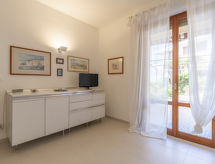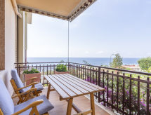 "Blu oltremare", 1-Zimmer-Wohnung 55 m2 im 1. Stock. Hell, renoviert im Jahre 2022, geschmackvoll eingerichtet: Wohn-/Esszimmer mit 1 Doppeldiwanbett (160 cm, Länge 200 cm), TV. Ausgang zur Terrasse. Kochnische (Backofen, 2 Flammen, Toaster, Wasserkocher). Ausgang zur Terrasse. Dusche/Bidet/WC. G-Heizung, Klimaanlage. Heizung nur verfügbar von 15.10. bis 15.10. Grosse Terrasse 30 m2. Terrassenmöbel, Liegestühle. Sehr schöne Panoramasicht auf das Meer. Zur Verfügung: Waschmaschine. Internet (Wireless LAN, gratis). CITRA:008055-LT-1760 Überrascht Sie mit einer herrlichen Aussicht aufs Meer. Es hat eine Terrasse. Sollte das Wetter einmal nicht mitspielen, ist auch ein Fernseher vorhanden.- Ausstattung