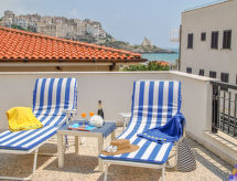1-Zimmer-Attikawohnung 25 m2 im 2. Stock. Komfortabel und gemütlich eingerichtet: Wohn-/Schlafzimmer mit 1 Diwanbett, 1 Doppelbett, Esstisch, Küchenblock, TV und Flachbildschirm. Ausgang zur Terrasse. (4 Kochplatten, Backofen). Dusche/Bidet/WC. Klimaanlage. Grosse Terrasse 150 m2 teilweise überdacht, Gartensitzplatz. Terrassenmöbel, Gartengrill. Schöne Sicht auf das Meer. Zur Verfügung: Waschmaschine, Haartrockner. Internet (Wireless LAN). 1 kleines Haustier/Hund erlaubt. Bietet wunderschöne Aussicht aufs Meer. Es gibt eine Terrasse. Unabhängiger sind Sie mit der eigens vorhandenen Waschmaschine.- Ausstattung