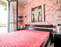 "Blue Lagoon", 3-Zimmer-Wohnung 50 m2 im 1. Stock. Zweckmässig eingerichtet: Wohn-/Esszimmer mit Sat-TV und Klimaanlage. Ausgang zum Balkon. 1 Doppelzimmer. Ausgang zum Balkon. 1 kleines Zimmer mit 1 x 2 Etagenbetten. Kochnische (4 Kochplatten, Backofen, Tiefkühler, elektrische Kaffeemaschine). Dusche/Bidet/WC. G-Heizung (extra). Heizung nur verfügbar von 15.10. bis 15.04. 2 Balkone. Balkonmöbel. Zur Verfügung: Waschmaschine. Internet (Wireless LAN, gratis). Parkplatz. CIR:012104-CNI-00001 Es gibt ein Balkon. Informieren Sie sich im über den vorhandenen TV Apparat. Ob lokale Neuigkeiten oder internationale Nachrichten, mit dem Fernsehen sind sie stehts gut informiert.- Ausstattung