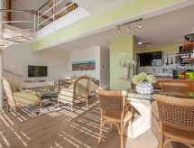 1-Zimmer-Wohnung "315", für 2 Personen, 65 m2 im 3. Stock, einfach eingerichtet. Wohn-/Schlafzimmer mit Sat-TV und Esstisch. Rauchen nicht erlaubt. Internet (Wireless LAN [WLAN]). 2 Normalbetten. Offene Küche mit 4 - Platten Herd, Mikrowelle, Backofen, Geschirrspüler und Kühlschrank. Dusche/WC und sep. WC. Gartensitzplatz 2 m2. Weitere Ausstattung: Safe, Haartrockner, Bügeleisen, Waschmaschine. Fully furnished and beautifully Loft Studio apartment, Open plan living room leading onto large balcony with patio furniture, Flat screen TV with DSTV selected channels and DVD player, fully equipped kitchen with fridge/freezer, gas stove, microwave, kettle and toaster, Washing machine, dishwasher, crockery, cutlery and cooking utensils, 4 seater dining table, 1 bedroom with ensuite bathroom shower only, basin and toilet, Bathroom downstairs with toilet and basin, Bedding configuration: 2 beds which can be converted into one king bed , Bed linen and towels provided, Air conditioned, Internet Access FREE WiFi, Hairdryer, iron and ironing board, Big working table, with office chair, Dedicated parking bay, Level: 3rd Floor, Access: Elevator and stairs, Swimming pool in complex, 24hour-security, balcony. This apartment only has one open patio in front of the unit and no balcony. This patio is also not private but does have a small table with 2 chairs. Guest are able to sit at the pool when the patio is closed. Objekt mit Aufzug. Damit es auch im Sommer angenehm kühl bleibt, verfügt dieses Ferienobjekt über eine Klimaanlage. Es gibt ein Pool.- Charakteristik des Mietobjekts