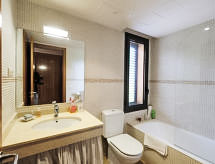 Golf Bonmont: Gemütliches, komfortables Appartementhaus "Bonmont". Im Ort, 4 km vom Zentrum von Miami Platja, 4.5 km vom Meer, 4.5 km vom Strand, am Golfplatz. Zur Mitbenutzung: Grundstück mit Rasen, Schwimmbad nierenförmig (saisonale Verfügbarkeit: 01.Mai. - 30.Sep.). Aussendusche, Poolpflege durch den Besitzer/Gärtner, Parkplatz beim Haus. Supermarkt 4 km, Restaurant, Bar 800 m, Bahnstation "Hospitalet Infant" 9 km, Sandstrand 4.5 km. Nahe gelegene Sehenswürdigkeiten: Parque Portaventura 28 km, parque acuático Aquopolis 31 km, parque Natural del Delta del Ebro 53 km, Tarragona 37 km, Reus 30 km, Barcelona 132 km. Bitte beachten: Fahrzeug empfohlen. Jugendgruppen nur auf Anfrage. 5m vom Golfplatz "Hoyo 13" entfernt. Einrichtungen des Resorts, gegen Aufpreis: Olympia-Schwimmbad (Juli und August), Fussballplatz, Tennis, Padel-Tennis, Fitness, Golf, "Pitch and Putt" Golfplatz, Clubhaus-Restaurant, Geschäft. Mit Attraktionen und Shows bietet der Freizeitpark jede Menge Abwechslung. Für Familien ein Muss!Interior