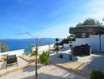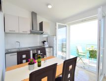 2-Zimmer-Wohnung 35 m2 im 2. Stock, Südlage. Wohn-/Esszimmer mit 1 Doppeldiwanbett (140 cm, Länge 200 cm), Sat-TV (Flachbildschirm), Klimaanlage. Ausgang zum Balkon. 1 Zimmer mit 1 franz. Bett (160 cm, Länge 200 cm), Sat-TV (Flachbildschirm). Offene Küche (Backofen, 4 Glaskeramikherd Platten, Tiefkühler, elektrische Kaffeemaschine). Dusche/WC. Balkon 10 m2. Balkonmöbel. Herrliche Sicht auf das Meer. Zur Verfügung: Internet (Wireless LAN, gratis). Das Grundstück ist komplett eingezäunt. Überdies werden sie verwöhnt mit einem freien Blick auf das Meer. Ein Balkon ist vorhanden. Geeignet zum Grillen. Es gibt WLAN (Drahtloses lokales Netzwerk).- Ausstattung