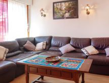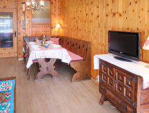 "Bouleaux E 1", 3-Zimmer-Wohnung im 1. Stock. Objekt geeignet für 2 Erwachsene + 3 Kinder. Zweckmässig eingerichtet: Wohn-/Esszimmer mit Kabel-TV. Ausgang zum Balkon, Richtung Süden. 1 Zimmer mit 1 franz. Bett (140 cm, Länge 200 cm). Ausgang zum Balkon, Richtung Norden. 1 Kinderzimmer mit 1 Bett (90 cm, Länge 200 cm), 1 x 2 Etagenbetten (90 cm, Länge 190 cm). Ausgang zum Balkon, Richtung Norden. Küche (3 Kochplatten, Backofen). Bad, sep. WC. Balkon, Südlage Balkon, Nordlage. Balkonmöbel. Sicht auf die Ortschaft. Zur Verfügung: Internet (Wireless LAN, gratis). Bitte beachten: Nichtraucher-Unterkunft. Residenz. Badewanne im Haus. Beachten Sie bitte, das Rauchverbot gilt im gesamten Gebäude. Bequem mit dem Lift bis vor die Haustür. Das Haus ist auch mit einem Babybett ausgestattet. Ein Wäschetrockner ist vorhanden.- Charakteristik des Mietobjekts