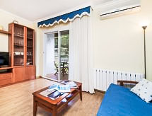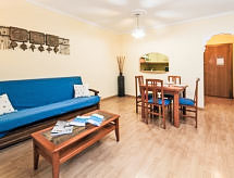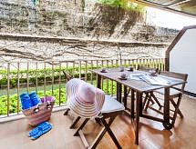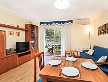 "Buenos Aires", 3-Zimmer-Wohnung 55 m2, im Erdgeschoss. Komfortabel und gemütlich eingerichtet: Wohn-/Esszimmer mit Digital-TV und Klimaanlage. Ausgang zur Terrasse. 1 Doppelzimmer mit 1 franz. Bett (135 cm, Länge 190 cm). 1 Zimmer mit 2 Betten (90 cm, Länge 190 cm). Offene Küche (Geschirrspüler, 4 Glaskeramikherd Platten, Mikrowelle, Tiefkühler, elektrische Kaffeemaschine). Dusche/Bidet/WC. Kleine Terrasse. Terrassenmöbel. Sicht auf den Garten. Zur Verfügung: Bügeleisen, Kinderhochstuhl, Babybett, Haartrockner. Internet (Wireless LAN). Parkplatz Nr. 4 (überdacht). Bitte beachten: geeignet für Familien. TV nur ES. Wenn der älteste Reisende jünger als 30 Jahre ist, muss die Buchung angefragt werden. Ohne Bestätigung kann der Zugang zur Ferienwohnung bzw. -haus verwehrt werden. HUTG017430 Bequem mit dem Lift bis vor die Haustür. Ein Geschirrspüler ist vorhanden. Ein überdachter Parkplatz ist vorhanden. Das Haus ist auch mit einem Kinderbecken ausgestattet. Ein Tischtennistisch ist verfügbar.- Ausstattung