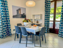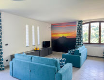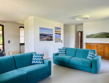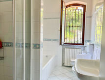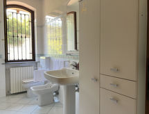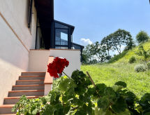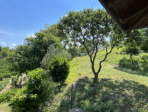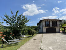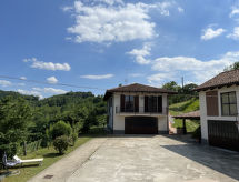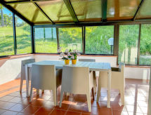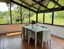 3-Zimmer-Haus 110 m2, im erhöhten Erdgeschoss. Komfortabel und geschmackvoll eingerichtet: Wohn-/Schlafzimmer mit Panoramafenster mit 1 Doppeldiwanbett und TV. Ausgang zum Balkon, zur Veranda. 1 Zimmer mit 1 Doppelbett. Ausgang zum Balkon. 1 Doppelzimmer. Ausgang zum Balkon. Grosse, offene Küche (Backofen, Geschirrspüler, Gasherd, 5 Flammen, Wasserkocher, Mikrowelle, Tiefkühler, elektrische Kaffeemaschine). Ausgang zur Veranda. Sep. WC, Bad/Dusche/Bidet/WC. Heizung (extra). Heizung nur verfügbar von 01.10. bis 15.04. Natursteinböden. Grosse Terrasse 25 m2. Terrassenmöbel, Gartengrill (mobil), Liegestühle (4), Wintergarten. Sicht auf das Tal und die Landschaft. Zur Verfügung: Waschmaschine, Wäschetrockner, Bügeleisen, Kinderhochstuhl, Babybett bis 2 Jahre, Wickelkommode. Internet (Wireless LAN, gratis). Garage (2 Autos). CIR:00423100003 Eine Veranda ist vorhanden. Es gibt ein Internetanschluss. Ein Mikrowellenofen steht zur Verfügung. Es hat ein Ofen.- Charakteristik des Mietobjekts