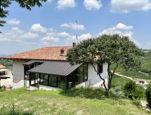 Modernes, gemütliches Landhaus "Ca'del Fre'", umgeben von Wiesen und Weinbergen. 4 km vom Zentrum von Trezzo Tinella, ausserhalb des Ortes, 10 km vom Zentrum von Alba, ruhige, sonnige Lage auf einem Hügel. Zur Alleinbenutzung: naturbelassenes Grundstück 2'000 m2 (eingezäunt), Naturgarten, Hof, Parkplatz beim Haus auf dem Grundstück. Supermarkt 8 km, Restaurant 3 km. Nahe gelegene Sehenswürdigkeiten: Barbaresco 4 km, Barolo 16 km, Asti 25 km. Bitte beachten: Fahrzeug empfohlen. Der Besitzer wohnt auf dem gleichen Grundstück.Interior