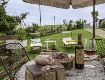 "Ca' Marianna", 4-Zimmer-Wohnung 120 m2, im Erdgeschoss. Hell, schön und geschmackvoll eingerichtet: 1 Zimmer mit 1 Doppelbett. Ausgang zur Terrasse. 1 Zimmer mit 1 Doppelbett. 1 Zimmer mit 1 Doppeldiwanbett. Wohnküche (Backofen, 4 Flammen, Toaster, Wasserkocher, Mikrowelle, Tiefkühler, elektrische Kaffeemaschine) mit Esstisch. Bad/Dusche/WC. Heizung. Heizung nur verfügbar von 01.10. bis 30.04. Terrasse. Terrassenmöbel, Gartengrill (mobil), Liegestühle (2). Panoramasicht. Zur Verfügung: Kinderhochstuhl, Babybett. Internet (Wireless LAN, gratis). Parkplatz (2 Autos). Bitte beachten: 2 Haustiere/Hunde erlaubt. Eigener Eingang. CIR: 005091-BEB-00002 Das Grundstück ist komplett eingezäunt. Die Entspannung und das Lebensgefühl im Garten sind im Urlaub unverzichtbar. Mit eigenem Whirlpool.,Nutzen Sie den Whirlpool. Das Haus ist auch mit einem Babybett ausgestattet. Ein Internetanschluss ist verfügbar. Es gibt WLAN (Drahtloses lokales Netzwerk). Das Haus ist auch mit einem Tischtennistisch ausgestattet.- Charakteristik des Mietobjekts