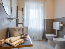 Schönes, gemütliches Zweifamilienhaus "Ca' Marianna", umgeben von Wiesen und Feldern. 3.5 km vom Zentrum von Roatto, 6 km vom Zentrum von Villafranca d'Asti, 21 km vom Zentrum von Asti, erhöhte Lage. Zur Mitbenutzung: Grundstück 1'000 m2 (eingezäunt), Garten mit Pflanzen, Naturgarten, Wiese. Zur Alleinbenutzung: Grundstück mit Wiese. Aussendusche. Im Hause: Sauna, Dampfbad, Sprudelbad (alles extra), Tischtennis, Waschmaschine (zur Mitbenutzung, extra). Parkplatz beim Haus auf dem Grundstück. Einkaufsgeschäft 3.5 km, Supermarkt 6 km, Bahnstation "Villafranca d'Asti" 6 km. Ab Hof Verkauf von bäuerlichen Produkten. Bitte beachten: Der Besitzer wohnt im selben Haus. Eigentümer hat einen Hund.Interior