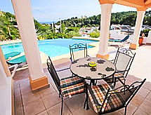 5-Zimmer-Villa 180 m2. Geschmackvoll eingerichtet: Wohn-/Esszimmer 45 m2 mit Sat-TV. Ausgang zur Terrasse. 1 Zimmer mit 1 franz. Bett und Bad/Dusche/WC. Ausgang zur Terrasse. Küche (Backofen, Geschirrspüler, Mikrowelle, Tiefkühler). Ausgang zur Terrasse. Sep. WC. Fussbodenheizung. Obergeschoss: (Aussentreppe) kleines Wohnzimmer. 2 Zimmer, jedes Zimmer mit 1 franz. Bett (160 cm, Länge 200 cm), Dusche/WC. Ausgang zur Terrasse. Liegestühle, Abstellkammer. Sehr schöne Sicht auf das Meer und die Landschaft. Zur Verfügung: Waschmaschine, Wäschetrockner. Parkplatz (überdacht). Maximal 1 Haustier/Hund erlaubt. Keine interne Verbindung zwischen den separaten Wohneinheiten. AT-435581-A Auch ihr Hund ist hier ein gern gesehen Feriengast, schließlich gehört er zur Familie. Mit eingezäuntem Grundstück. Gewährt spektakulärer Aussicht auf das Meer. Geeignet für ein Barbecue. Informieren Sie sich im über den vorhandenen TV Apparat. Ob lokale Neuigkeiten oder internationale Nachrichten, mit dem Fernsehen sind sie stehts gut informiert. Eine Waschmaschine ist zum gebrauch vorhanden. Ein Wäschetrockner ist vorhanden.- Charakteristik des Mietobjekts