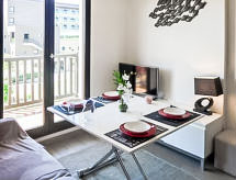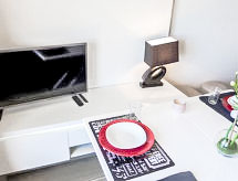 2-Zimmer-Wohnung 24 m2 im 2. Stock, Westlage. Wohn-/Esszimmer mit TV (Flachbildschirm). Ausgang zum Balkon. 1 Zimmer mit 1 Doppeldiwanbett (140 cm, Länge 190 cm). Kochnische (Geschirrspüler, 3 Induktionskochplatten, Toaster, elektrische Kaffeemaschine, Kapseln für die Kaffeemaschine (Nespresso) extra, Kombinationsmikrowelle). Dusche/WC. E-Heizung. Balkon 8 m2. Balkonmöbel, Liegestühle (2). Seitliche Sicht auf das Meer. Zur Verfügung: Internet (Wireless LAN, extra). Bitte beachten: Nichtraucher-Unterkunft. Rauchmelder, kein Fahrstuhl. Residenz. Bequem mit dem Lift bis vor die Haustür. Das Haus ist auch mit einem Parkplatz ausgestattet. Informieren Sie sich im über den vorhandenen TV Apparat. Ob lokale Neuigkeiten oder internationale Nachrichten, mit dem Fernsehen sind sie stehts gut informiert.- Charakteristik des Mietobjekts