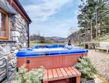 4-Zimmer-Landhaus auf 2 Stockwerken. Geräumig und hell, komfortabel und geschmackvoll eingerichtet: offenes Wohnzimmer mit TV, Flachbildschirm, DVD und Holzofen. Offene Küche (4 Kochplatten, Backofen, Geschirrspüler, Mikrowelle, Tiefkühler) mit Esstisch, Holzofen. Heizung. Obergeschoss: 2 Doppelzimmer, jedes Zimmer mit 1 Doppelbett. 1 Zimmer mit 2 Betten. Bad/Dusche/WC. Heizung. Terrassenmöbel, Gartengrill. Schöne Sicht auf die Landschaft. Zur Verfügung: Waschmaschine, Wäschetrockner. Internet (Wireless LAN, gratis). Bitte beachten: Nichtraucher-Haus. 2 Haustiere/Hunde erlaubt. Für Ihr Wohlbefinden geniessen den Whirlpool in der Urlaubszeit. Eine Feuerstelle ist vorhanden. Sollte das Wetter einmal nicht mitspielen, ist auch ein Fernseher vorhanden. Es hat ein DVD Spieler. Ein Mikrowellenofen steht zur Verfügung.- Charakteristik des Mietobjekts