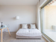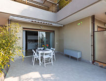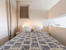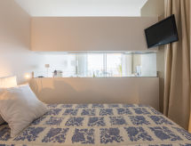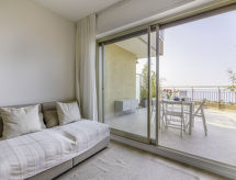 "Calandre Suite", 1-Zimmer-Wohnung 35 m2. Sehr schön und geschmackvoll eingerichtet: offenes Wohn-/Schlafzimmer mit Panoramafenster mit 1 franz. Bett (140 cm, Länge 190 cm). Ausgang zum Balkon. Offene Küche (4 Induktionskochplatten, Mikrowelle, elektrische Kaffeemaschine). Ausgang zum Balkon. Dusche/Bidet/WC. Heizung nur verfügbar von 15.10. bis 30.04. Grosser Balkon 25 m2. Balkonmöbel. Sehr schöne Panoramasicht auf das Meer. Zur Verfügung: Waschmaschine. Internet (Wireless LAN). 008065-LT-0257 Residenz. Ein Parkplatz ist verfügbar. Dank der Waschmaschine die Sie vorfinden, sind weniger Kleider zum mitschleppen.- Charakteristik des Mietobjekts