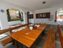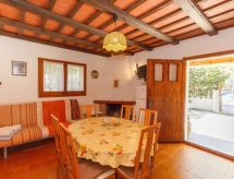 Komfortables, gemütliches Zweifamilienhaus "Calsina Baix". Waschmaschine (zur Mitbenutzung). Zufahrt & Parkmöglichkeiten: Parkplatz beim Haus. Ganzjährig Zufahrt bis zum Haus möglich. Auto empfohlen. Umgebung des Hauses: Garten (zur Mitbenutzung, 80 m2, eingezäunt), Swimming Pool (zur Mitbenutzung, Länge 8 m x Breite 4 m), Grill (zur Alleinbenutzung). Infrastruktur und Distanzen: Einkaufsgeschäft 200 m, Lebensmittelgeschäft 200 m, Supermarkt 400 m, Restaurant 100 m, Freibad 100 m, Sandstrand 400 m, Golfplatz 2 km.Interior