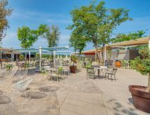 3-Zimmer-Mobilheim 32 m2. Schön eingerichtet: Wohn-/Esszimmer mit 1 Doppeldiwanbett (140 cm, Länge 190 cm), Sat-TV und Klimaanlage. Ausgang zur Terrasse. 1 Zimmer mit 1 franz. Bett (160 cm, Länge 200 cm), Dusche/WC. 1 Zimmer mit 2 Betten (80 cm, Länge 200 cm). Offene Küche (4 Flammen, Tiefkühler). Dusche/WC. Terrasse. Terrassenmöbel. Zur Verfügung: Kinderhochstuhl (extra). Internet (Wireless LAN, gratis). Bitte beachten: Nichtraucher-Unterkunft. Die Wohnmobile befinden sich 300-400 m vom Meer und vom Strand entfernt. 1 Auto kann neben dem Wohnmobil geparkt werden, im Mietpreis inbegriffen. Ein zweiter Parkplatz für ein weiteres Auto ist extra bezahlbar. Eine Rezeption steht ihnen bei dieser Ferienunterkunft zur Verfügung. Spielangebot für Kinder aller Altersklassen sind auf dem Areal vorhanden. Es hat ein Pool. Ein Kinderbecken ist vorhanden. Ein Tischtennistisch ist vorhanden.- Ausstattung