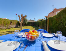 "Residencial Campo Olivar", 3-Zimmer-Reihenhaus auf 2 Stockwerken. Objekt geeignet für 4 Erwachsene + 1 Kind. Einfach eingerichtet: Wohn-/Esszimmer mit Sat-TV. Ausgang zum Garten. Offene Küche (Backofen, 3 Glaskeramikherd Platten, Mikrowelle, elektrische Kaffeemaschine). Sep. WC. Obergeschoss: 1 Zimmer mit 1 franz. Bett, 1 Klappbett, Klimaanlage, Ventilator und Warmluftheizung. 1 Zimmer mit 2 Betten, Klimaanlage, Ventilator und Warmluftheizung. Bad/WC. Zur Verfügung: Waschmaschine. Internet (Wireless LAN, gratis). Parkplatz (eingezäunt). Geeignet für Familien. AT-473997-A Eine Badewanne ist vorhanden. Das Grundstück ist komplett eingezäunt. Ein dazugehöriger idyllischer Garten lädt zum Verweilen in der Sonne ein. Ein Babybett ist vorhanden. Es hat ein Pool. Das Haus ist auch mit einem Kinderbecken ausgestattet. Das Haus ist auch mit einem Internetanschluss ausgestattet. Ein drahtloses lokales Netzwerk (WLAN) ist vorhanden. Ein Ofen ist vorhanden.- Ausstattung