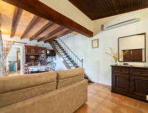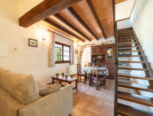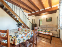 "Can Canto", 1-Zimmer-Haus 75 m2 auf 2 Stockwerken. Objekt geeignet für 2 Erwachsene. Zweckmässig und schön eingerichtet: offenes grosses Wohn-/Esszimmer mit Esstisch, Sat-TV, Digital-TV und Flachbildschirm. Ausgang zum Gartensitzplatz, zum Schwimmbad. 1 abgeschrägtes, offenes grosses Doppelzimmer mit 1 franz. Bett (200 cm, Länge 200 cm). Grosse Küche (Backofen, Geschirrspüler, 3 Induktionskochplatten, Toaster, Wasserkocher, Mikrowelle, Tiefkühler). Dusche/WC. Keine Heizmöglichkeit. Natursteinböden. Grosser Gartensitzplatz, Rasen. Terrassenmöbel, Gartengrill, Liegestühle (2). Sicht auf die Berge und die Landschaft. Zur Verfügung: Waschmaschine, Bügeleisen, Kinderhochstuhl, Babybett bis 2 Jahre, Haartrockner. Internet (Wireless LAN, gratis). Geeignet für Familien. ETV216 Das Grundstück ist komplett eingezäunt. Für Ihr Wohlbefinden geniessen den Whirlpool in der Urlaubszeit. Es gibt eine Veranda. Sollte das Wetter einmal nicht mitspielen, ist auch ein Fernseher vorhanden. Es hat ein drahtloses lokales Netzwerk (WLAN).- Ausstattung