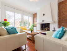 Torredembarra 20 km von Tarragona: Gemütliches, komfortables Doppelhaus "Cantamar", auf 2 Stockwerken. Am Ortsrand, 1 km vom Zentrum von Torredembarra, ruhige, sonnige, erhöhte Lage, verkehrsberuhigte Zone, 30 m vom Meer, 600 m vom Strand, in einer Sackgasse. Zur Alleinbenutzung: Hof, Aufstellpool rund (4.5 m Durchmesser, 110 - 110 cm tief, saisonale Verfügbarkeit: 01.Mai. - 30.Okt.). Aussendusche, Sitzplatz, Grill, Poolpflege durch den Besitzer/Gärtner Parkplatz (für 2 Autos). Einkaufsgeschäft, Lebensmittelgeschäft, Supermarkt 600 m, Einkaufszentrum 20 km, Restaurant 400 m, Bar 600 m, Bäckerei 1 km, Fußgängerzone 600 m, Zentrum zu Fuss in 20 Minuten erreichbar, Bushaltestelle 500 m, Bahnstation "Renfe Torredembarra" 1.5 km, Sandstrand 600 m. Sporthafen, Jacht-Hafen 500 m, Tennis 2 km, Reitstall 2 km, Sportzentrum 2 km, Wanderwege ab Haus 5 km. Nahe gelegene Sehenswürdigkeiten: Port Aventura / Ferrari Land, Jungle Trek. Bitte beachten: Fahrzeug empfohlen. Objekt geeignet für 6 Erwachsene + 2 Kinder. Der Besitzer akzeptiert keine Jugendgruppen. Die Nachbarschaft ist sehr lärmempfindlich. Ruhe und gutes Benehmen wird erwartet. Surfer-Freunde aufgepasst, die hiesige Küste hat ideale Bedingungen zum Wellenreiten zu bieten. Ausflüge mit Pferden ermöglichen einem die Möglichkeit, dem Land und Leute nahe zu kommen. Was halten Sie von einem kleinen Ausritt? Bespielbare Tennisplätze sind disponibel für sportliche Ferienwochen.Interior
