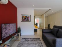 Neues, kinderfreundliches, modernes Appartementhaus "Capital Mirage Studio", Baujahr 2000. Hausausstattung: Fitnessraum, Fahrstuhl, Klimaanlage, Massage, Waschmaschine (zur Alleinbenutzung). Zufahrt & Parkmöglichkeiten: reservierter Parkplatz. Ganzjährig Zufahrt bis zum Haus möglich. Lage: im Ortszentrum von Cape Town, am Ortsrand von de Waterkant, zentrale, belebte Lage. Aussicht von der Wohnung auf die Berge. Umgebung des Hauses: Swimming Pool (zur Mitbenutzung, Länge 2 m x Breite 4 m, offen von 01.01. bis 31 .12.). Infrastruktur und Distanzen: Einkaufsgeschäft 30 m, Lebensmittelgeschäft 30 m, Supermarkt 30 m, Restaurant 30 m, Golfplatz 11 km. Bitte beachten, in der Nähe befindet sich ein Flughafen/Flugplatz in 24 km. The Capital Mirage is located against the beautiful backdrop of Table Mountain from where magnificent views of the Cape Town skyline can be admired and the ideal opportunity to enjoy the incomparable Cape Town lifestyle. Situated in the trendy De Waterkant area, The Capital Mirage gives you Restaurants and a Spa on the premises and on top of that you are close to all attractions in Cape Town. The Capital Mirage 704 offers a comfortable One Bedroom Self Catering Apartment with sleeper couch. Fully stocked Kitchen, en-suite bathroom and inviting lounge with large Smart television. Whether you’re seeking leisurely lunches, roof top cocktails, trendy nightclubs or retail therapy, The Capital Mirage puts it all within strolling distance. In close proximity to Cape Town Cruise Terminal, Zeitz Museum of Contemporary Art, Cape Town International Convention Centre, local Markets and the VA Waterfront. The streets are lined with art galleries, boutiques, restaurants, interior decorating shops, tapas bars and sidewalk cafes which have been inspired by the romantic boulevards of Paris. Be amazed by the panoramic views from the rooftop restaurant Sky Bar. Enjoy complimentary uncapped Wi-Fi and parking. Swimming pool on the roof, gym, and spa. The building features a fashion, food, and entertainment hub with vibrant, cosmopolitan energy. Für aktive Menschen gehören Fitness zum Alltag. Bei uns müssen sie darauf nicht verzichten. Wir gewähren das notwendige Equipment für Ihre Fitness. Bei uns werden Massagen angeboten.Interior