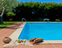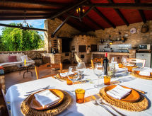 8-Zimmer-Villa 320 m2 auf 2 Stockwerken. Komfortabel und geschmackvoll eingerichtet: grosses Wohnzimmer mit offenem Kamin und Sat-TV (Flachbildschirm), DVD. Ausgang zum Gartensitzplatz. Esszimmer. Ausgang zum Gartensitzplatz. 1 Doppelzimmer mit Dusche/Bidet/WC. 1 Doppelzimmer. Küche (4 Kochplatten, Backofen, Geschirrspüler, Toaster, Wasserkocher, Mikrowelle, Tiefkühler) mit Esstisch, TV. Bad/Bidet/WC. Obergeschoss: (Leiter) offenes Wohnzimmer. 1 Doppelzimmer mit Klimaanlage und Warmluftheizung. 2 Zimmer, jedes Zimmer mit 2 Betten, Klimaanlage und Warmluftheizung. Dusche/Bidet/WC. Grosser Gartensitzplatz 60 m2, überdacht. Terrassenmöbel, Gartengrill, Liegestühle. Sicht auf das Schwimmbad und den Garten. Zur Verfügung: Waschmaschine, Safe, Bügeleisen, Kinderhochstuhl, Babybett bis 2 Jahre (extra), Haartrockner. Internet (Wireless LAN, gratis). Parkplatz (3 Autos). Die Villa ist mit einer überdachten Außenküche ausgestattet: 4 Brenner, Holzofen, Kühlschrank, Esstisch. Eine Veranda ist verfügbar. Es gibt ein privater Pool. Es gibt ein DVD Spieler.- Charakteristik des Mietobjekts