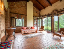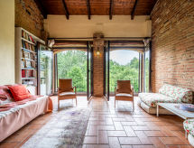 Sehr gemütliches, rustikales Landhaus "Carla", einseitig angebaut, umgeben von Wiesen und Feldern. 2 km vom Zentrum von Cortazzone, 23 km vom Zentrum von Asti, auf einem Hügel, im Grünen. Zur Alleinbenutzung: Grundstück 2'000 m2, Garten mit Pflanzen und Bäumen, Wiese, Obstgarten, Liegewiese, Schwimmbad (10 x 5 m, 140 - 270 cm tief, saisonale Verfügbarkeit: 15.Mai. - 15.Okt.) mit Salzelektrolyse-Reinigungssystem. Sitzplatz, Pergola, Gartenmöbel, Grill, Poolpflege durch den Besitzer/Gärtner Parkplatz beim Haus auf dem Grundstück. Einkaufsgeschäft 3 km, Supermarkt 13 km, Bahnstation "Asti" 23 km. Nahe gelegene Sehenswürdigkeiten: Turin 45 km, Alba 35 km. Besitzer wohnt in separatem Hausteil.Interior