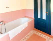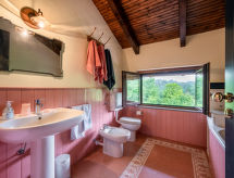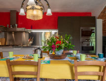 7-Zimmer-Doppelhaushälfte 250 m2 auf 2 Stockwerken. Rustikal eingerichtet: Wohnzimmer mit Holzofen. Ausgang zum Garten. Wohnzimmer mit offenem Kamin und Sat-TV. Ausgang zum Garten. Küche (Backofen, Geschirrspüler, 5 Flammen, Toaster, Wasserkocher, Mikrowelle, Tiefkühler) mit Esstisch und Holzofen. Ausgang zum Garten. Dusche/WC. Obergeschoss: Wohnzimmer mit Sat-TV. Ausgang zum Balkon. 1 Doppelzimmer. Ausgang zum Balkon. 2 Zimmer, jedes Zimmer mit 1 Doppelbett. 1 Zimmer mit 1 franz. Bett (140 cm, Länge 190 cm). Bad/WC, Dusche/WC, Doppelwaschbecken. Holzheizung. Heizung nur verfügbar von 01.10. bis 30.04. Parkettböden. Gartengrill (mobil). Panoramasicht auf die Landschaft. Zur Verfügung: Waschmaschine, Bügeleisen, Fliegengitter. Garage (2 Autos). Bitte beachten: Nichtraucher-Unterkunft. Maximal 1 Haustier/Hund erlaubt. CIR: 00504700001 Bitte unterlassen Sie das Rauchen im Ferienobjekt. Es ist nicht erlaubt. Geeignet zum Grillen.- Charakteristik des Mietobjekts